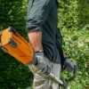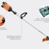 - With its integrated battery, this powerful electric grass cutter is ready to go as soon as you press the ON button.